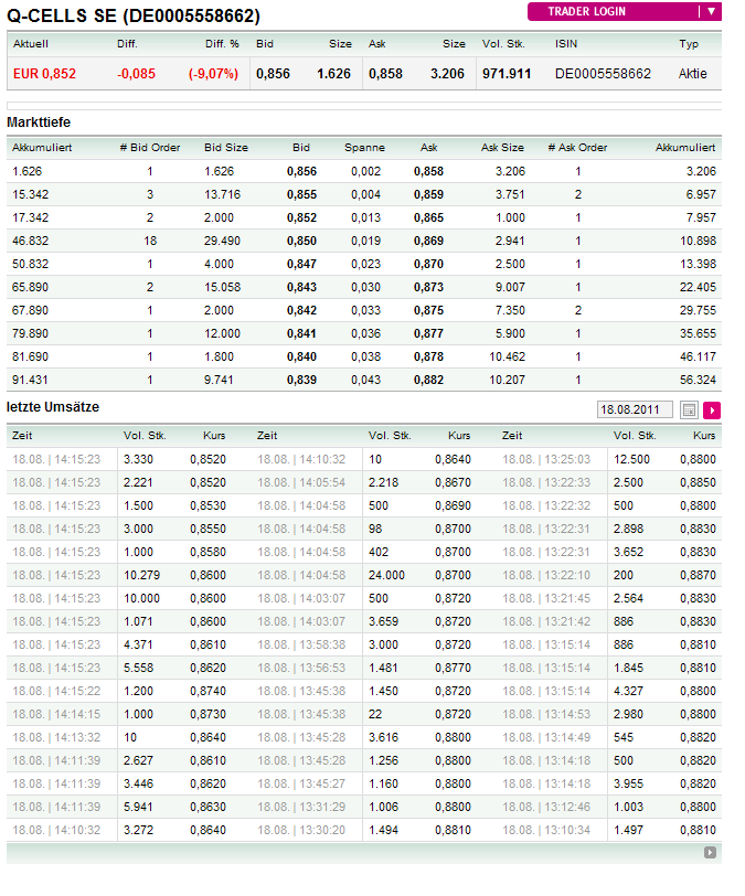 Und Q-Cells ist kein Einzelfall. Auch der Solarzulieferer Roth & Rau erlitt im ersten Halbjahr einen Verlust von 18 Mio. Euro. Hier hatte es im Vorjahr immerhin noch einen kleinen Gewinn von 5 Mio. Euro gegeben. Beim Umsatz ging es um 22% nach unten. Bei diesen Voraussetzungen ist auch keine schnelle Wende in Sicht.
