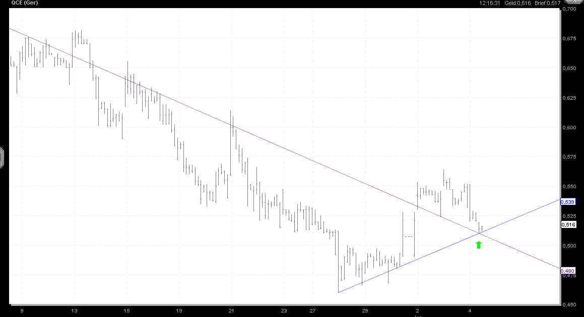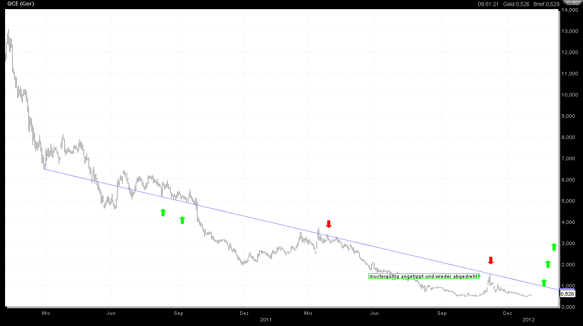 Vielleicht hast du mal recht! Nämlich dann, wenn Q überlebt und Geschäfte machen kann! Klar, dann geht's hoch! Aber bis dahin ist es noch ein langer Weg, der zum größten Teil von der POlitik bestimmt wird. Spielen die nicht mit, zugunsten der europäischen Industrie, dann übernehmen eben die Chinesen so gut wie alle Geschäfte in dieser Branche. Dann musst du den Chart gespiegelt zeichnen!