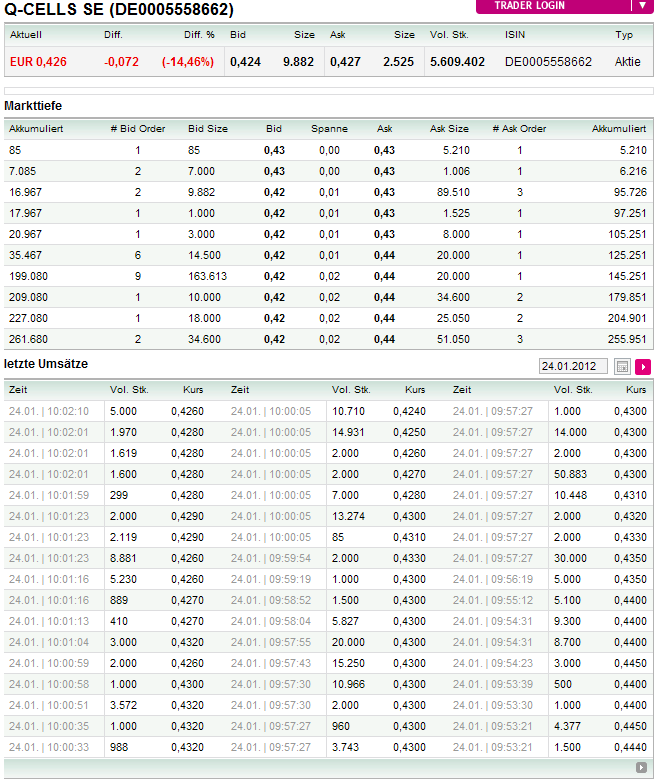 BITTERFELD (dpa-AFX) - Der Solarkonzern Q-Cells (Q-Cells Aktie) befindet sich in extremer Not. Nach einem Gerichtsurteil zu der im Februar fälligen Wandelschuldverschreibung ist das finanzielle Gerüst für die Sanierung des seit Jahren angeschlagenen Unternehmens erst einmal zusammengebrochen. Zugleich hat sich die operative Lage angesichts der Krise in der Branche weiter verschärft. Zu dem bereits dreistelligen Millionenverlust nach neun Monaten sind neue Abschreibungen hinzugekommen. Das Eigenkapital ist jetzt komplett aufgezehrt. Bei der deswegen anstehenden außerordentlichen Hauptversammlung muss Konzernchef Nedim Cen zusammen mit den Gläubigern einen Ausweg finden. Die Aktie fiel auf den tiefsten Stand der Unternehmensgeschichte.