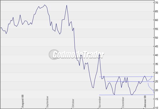 ich konnte intraday innerhalb von einer stunde ca 6 abpraller von der 28,10 sehen und auf einmal fällt der Kurs bis auf knapp über 25!