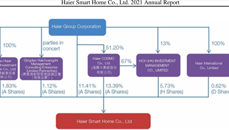 ◉ aussicht auf aktienrückkauf durch "HIC" = Haier International Co., Ltd. (Sitz in Hongkong), die offenbar noch die 58.135.194 Haier-D-aktien hält (= [58.135.194 / 271.013.973 =] rd. 21% der D-aktien = [58.135.194 / 9.446.522.864 =] rd. 0,62% a l l e r Haier-aktien, s. grafik unten, rechts außen)