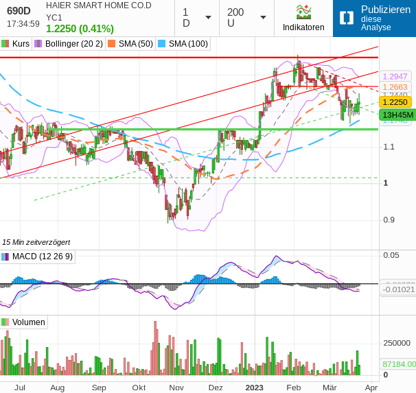 zwischen beobachtung und analyse des charts der Haier Smart Home D -aktie besteht ein wesentlicher (nicht nur sprachlicher) unterschied; das zeigt zB die seite der onvista bank: "Haier Smart Home D Chart", https://www.onvista.de/aktien/chart/HAIER-SMART-HOME-CO-LTD-Aktie-CNE1000031C1, auf der ca. hundert (überflüssige) "Indikatoren" für die chartanalyse der Haier-D-aktie verfügbar sind