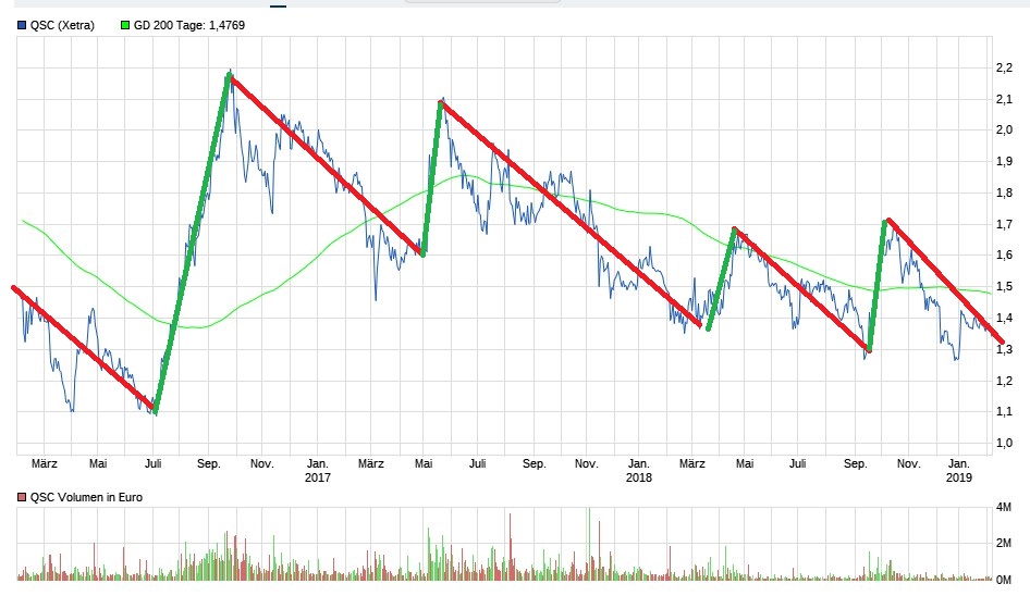 In 2018 hat QSC 8 zumindest umsatzrelevante Meldungen veröffentlicht, teilweise nur Vertragsverlängerungen. Im 2. HJ kam keine einzige solche Meldung, stattdessen Produktankündigungen und Auszeichnungen. Wie immer! Und wie immer langfristig ohne Umsatzzuwachs. Da muss ich auch nichts zwischen den Zeilen lesen.
