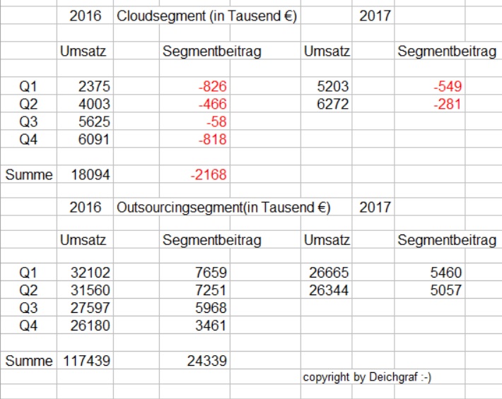 Ich liste die Zahlen mal kurz auf bzgl. Umsatz.