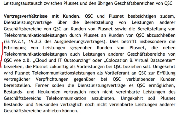 Ja, QSC hat auf die teilweise weiterhin bestehende Verflechtung QSC/Plusnet und den gegenseitigen Leistungsbezug hingewiesen. Ich möchte meine Fragen jetzt explizit auf das Segment Cloud ausrichten, wo QSC in der letzten Meldung explizit einen Umsatzanstieg von 24% gegenüber Q2/2018 vermeldete.