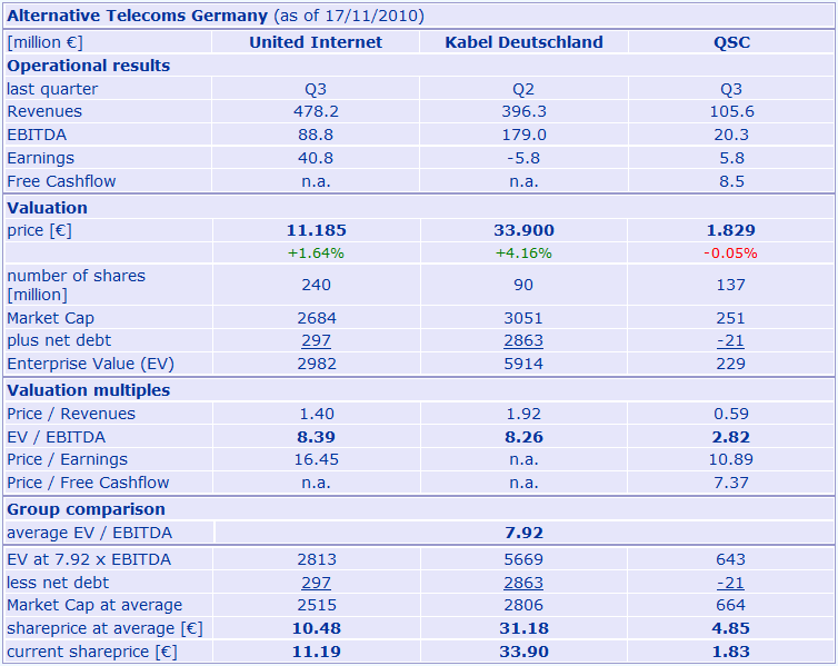 Angesichts der Fokussierung auf höhermargige IP-basierte Umsätze habe QSC erneut seine Finanz- und Ertragskraft deutlich gesteigert. Im dritten Quartal sei das Ergebnis vor Zinsen, Steuern und Abschreibungen (EBITDA) von 19,2 auf 20,3 Mio. Euro gestiegen. Planmäßig sinkende Abschreibungen hätten ferner dazu geführt, dass das Ergebnis vor Zinsen und Steuern (EBIT) von 3,1 auf 6,5 Mio. Euro überproportional gewachsen sei. Unter dem Strich habe der Konzern einen Profit von 5,8 Mio. Euro, nach 2,1 Mio. Euro im Vorjahreszeitraum erzielt. Dies habe nicht nur einer Steigerung von 176% entsprochen, QSC habe damit allein im dritten Quartal einen höheren Überschuss als im Gesamtjahr 2009 mit 5,5 Mio. Euro erwirtschaftet.