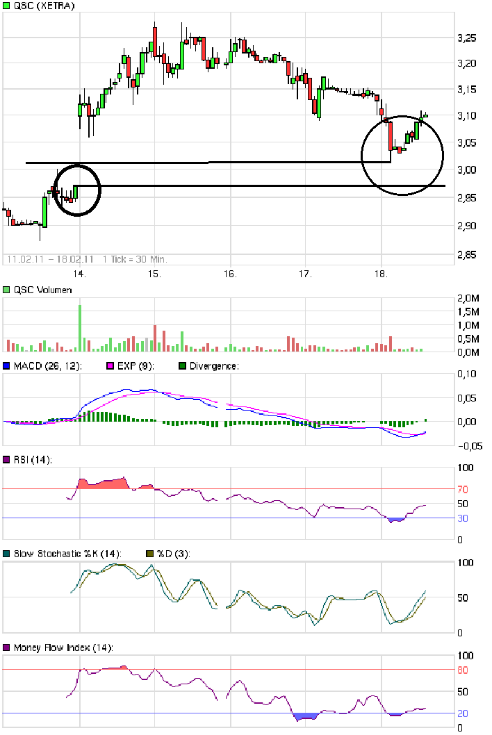 qsc ditschte gestern auf die obere abwärtstrendbegrenzung, und zwar von oben...nach meinem dafürhalten müsste der kurs dort abprallen, ebenfalls nach oben...wenn er nicht ausrutscht und wieder in den trendkanal eintaucht. habe ich recht mit meiner laienanalyse???? bitte handzeichen geben