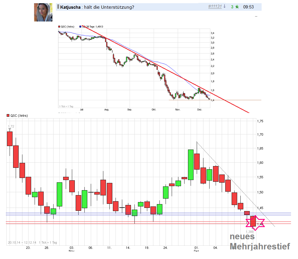 Ich glaube auch nicht, dass QSC jetzt zu einem dauerhaften Pennystock wird oder gar schlimmeres bishin zur Insolvenz. Es wird auch sicherlich immer mal wieder Gegenbewegungen nach oben geben.