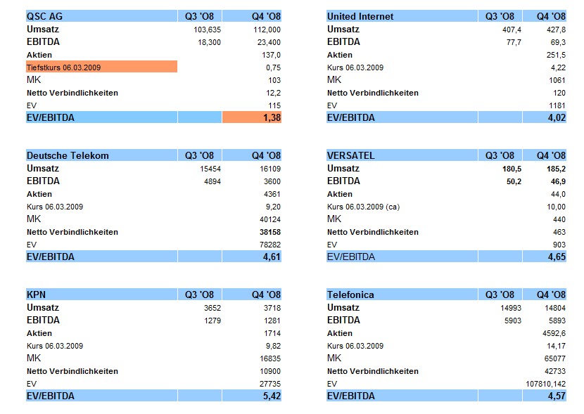 Desöfteren hatte ich damals vorgerechnet wie Versatel zumindest 2 Milliarde Euo wert sein müsste!!
