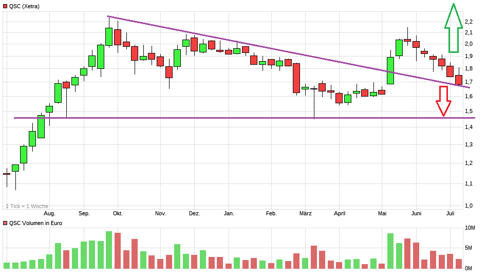 QSC hat dieses Jahr „verhalten Gut“ begonnen. Es gibt keinen ersichtlichen Grund, weder von der Seite der Presse noch vom Unternehmen selbst, dass die Jahreszahlen wie sie bekanntgegeben wurden nicht eingehalten werden können. Den ganzen anderen Schmarren der um diese Zahlen herum konstruiert wird ist für mich nicht mehr oder weniger als Blödsinn zu bezeichnen. Wer allerdings gerne auf Amateurkritiker hören will, dem kann nicht geholfen werden, auch nicht wenn QSC am 07.08. 2017 ihre Halbjahreszahlen im Rahmen der Erwartung vorlegt.