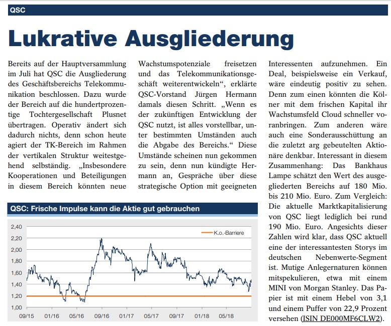 Ich sehe das genauso. Wer Geduld hat wird belohnt. Sollte der Kurs so weiter steigen bevor der Verkauf der Telekommunikationssparte unter Dach unter Fach ist kann es ganz schnell über 2 Euro gehen.