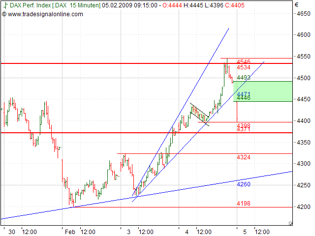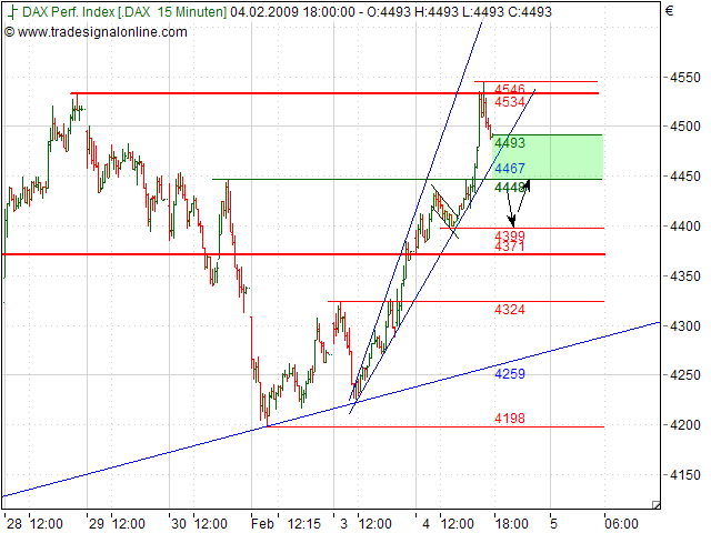 Rückblick: Der DAX erreichte gestern beui 4.534 das rechnerische Mindestziel der Zwischenrallye vom 23.01.2009.