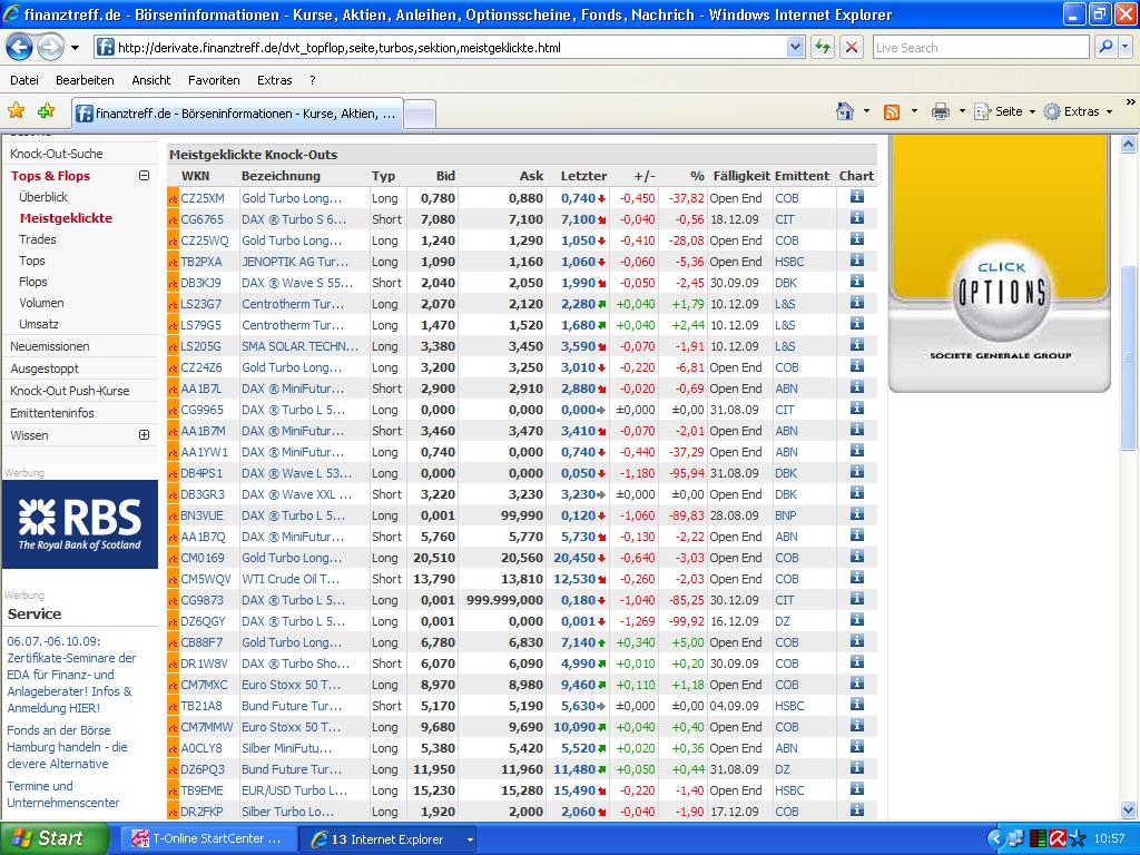 gutes CRV für short, falls das heute wieder erreicht wird, aber da wartest du vielleicht auch vergeblich. denkbar ist auch, dass es schon deutlich früher wieder nach unten abprallt. nicht ganz leicht zu sagen, weil der dax den us-indizes nun schon weit vorausläuft, kommt also drauf an, dass die nach unten mitziehen. eine gewisse bereitschaft ist da, und wenn es passiert, verschärft sich die abwärtsspirale. die gestrigen meldungen zu mbia und cit könnten den weg weisen. ein namhafter us-bankenanalyst hat gestern gesagt, dass us-bankentitel ihr top gesehen haben. das weist alles kurzfristig gen süden, aber halt in wellen