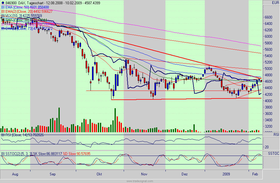 Deshalb sehen wir den Deutschen Aktienindex DAX im ersten Halbjahr 2009 deutlich unter 3500 Punkte fallen.