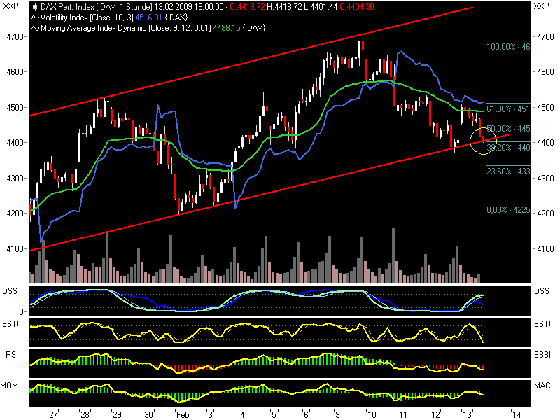 Sollte sich dieses Korrekturmuster bestätigen, steht der Dax kurz vor einer neuen Abwärtswelle, die - wie gestern schon geschrieben - ohne Weiteres das Niveau von 4.200 Punkten erreichen kann.