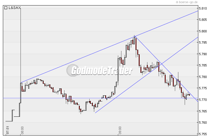 Sollte der DAX über 5.800 ansteigen können, so käme eine Aufwärtsbewegung bis zum mehrtägigen Abwärtstrend bei 5.825/5.830 in Frage.