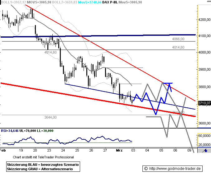 Intraday wirken heute Widerstände bei 3.750 und 3.800 sowie 3.825. Ein Anstieg über 3.825 ist kaum realistisch. Vielmehr dürfte sich der DAX eine längere Zeit des Handelstages zwischen 3.700 und 3.750 aufhalten.