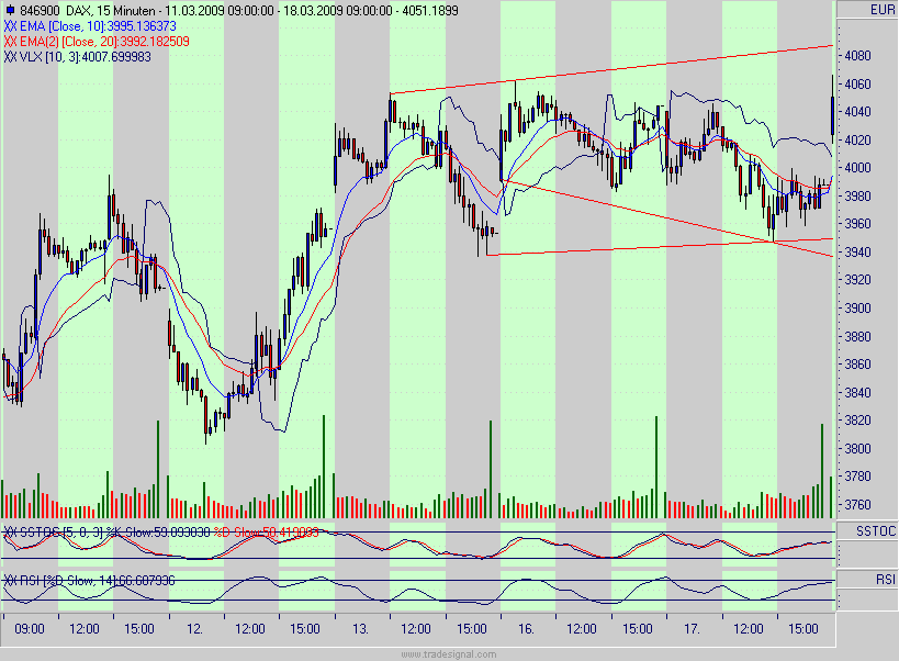 Dreimal haben sich die Bullen im Verlauf der vergangenen drei Handelstage daran versucht, den Widerstandsbereich 4.054/4.060 Punkten zu überwinden. Nicht einmal war ihnen ein Erfolg beschieden, mit Ausnahme des Montags, der einen Schlusskurs nur knapp unterhalb der Widerstandszone aufwies. Der gestrige Rückschritt aufgrund der schwächlichen Wall Street-Entwicklung war nicht von einem Automatismus gekennzeichnet. Die Sprünge, die die US-Futures im Tagesverlauf vollzogen, stellten allerdings ein deutliches Signal der Unsicherheit an den Märkten dar. Befördert wurde das Ganze von der Mitteilung des Kreditkartenunternehmens American Express über eine höhere Ausfallquote bei Auto- und allgemeinen Verbraucherkrediten. Würde es sich um eine normale Handelswoche handeln, hätten Investoren keinen Augenblick gezögert und die Indizes wieder konsequent auf Talfahrt geschickt. Im Angesicht des bevorstehenden Terminverfalls am kommenden Freitag können aber viele institutionelle Anleger offenbar nicht so wie sie wollen.