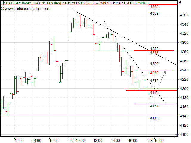 Intraday Unterstützungen: 4.190/4.200 + 4.140/4.150 + 3.975/4.035