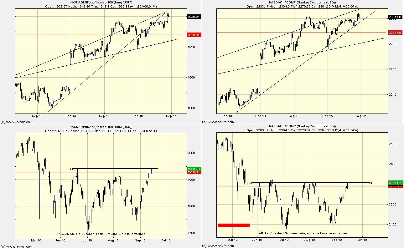 Insgesamt nehme ich für meine Strategie ein nochmaliges Halten der immer enger werdenden bisherigen Range an: Long bei DAX 6050, Short bei 6350 mit übergeordneten Long-Posis, da ich in diesem Jahr noch einen Ausbrauch nach oben erwarte.