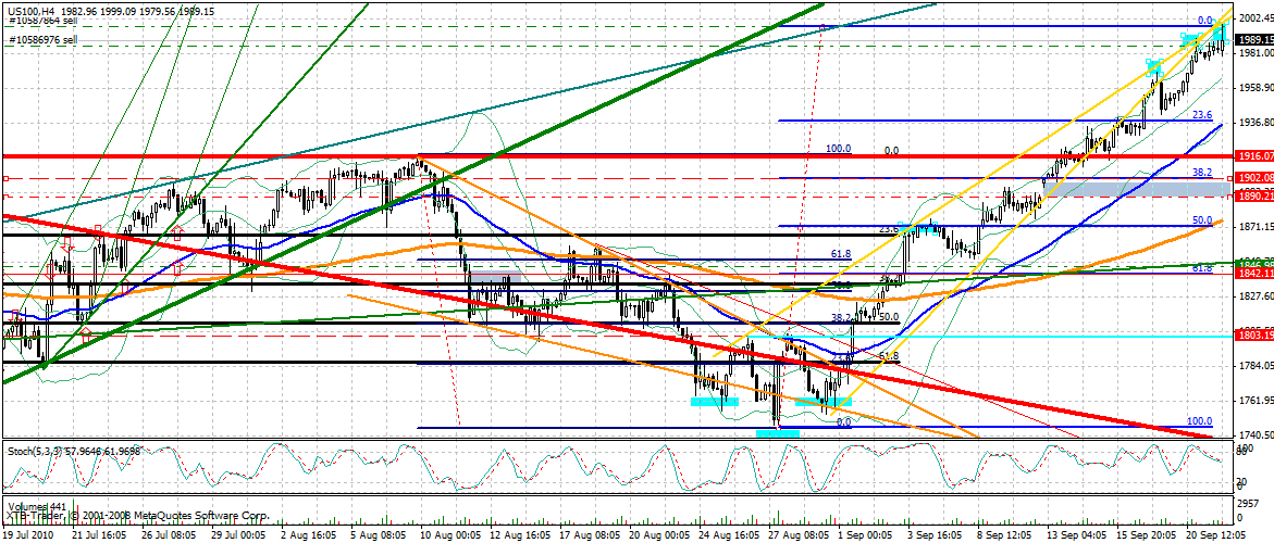 Soeben hat der Pacemaker NDX 100 jedoch bei 1998 F erneut die mehrfach bestätigte Pullbacklinie erreicht, die einen risikoarmen Shorttrade ermöglichen. 10 Pkt sind denke ich problemlos drin. Hier habe ich meinen heutigen Short eröffnet. Parallel dazu im DJ bei zirka 10830. Möglicherweise wird daraus aber auch ein Positionstrade.