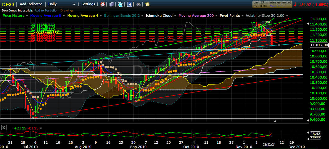 Dow läuft seit 7-8 Tagen im Minus ( gestern wenig bewegt )