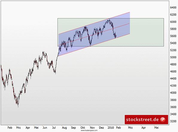 Aus der jetzigen Sicht kann man nur abwarten und zusehen, ob der Markt zu alter Stärke wiederfindet, bzw. die Schwäche erneut Überhand nimmt. Die unteren Marken sind auch morgen relevant, allerdings bis runter zur 5476. Das sollte man in seine Überlegungen mit einbeziehen. Vom jetzigen Stand aus sind das mehr als 100 Punkte, also Obacht und nicht zu viel riskieren.