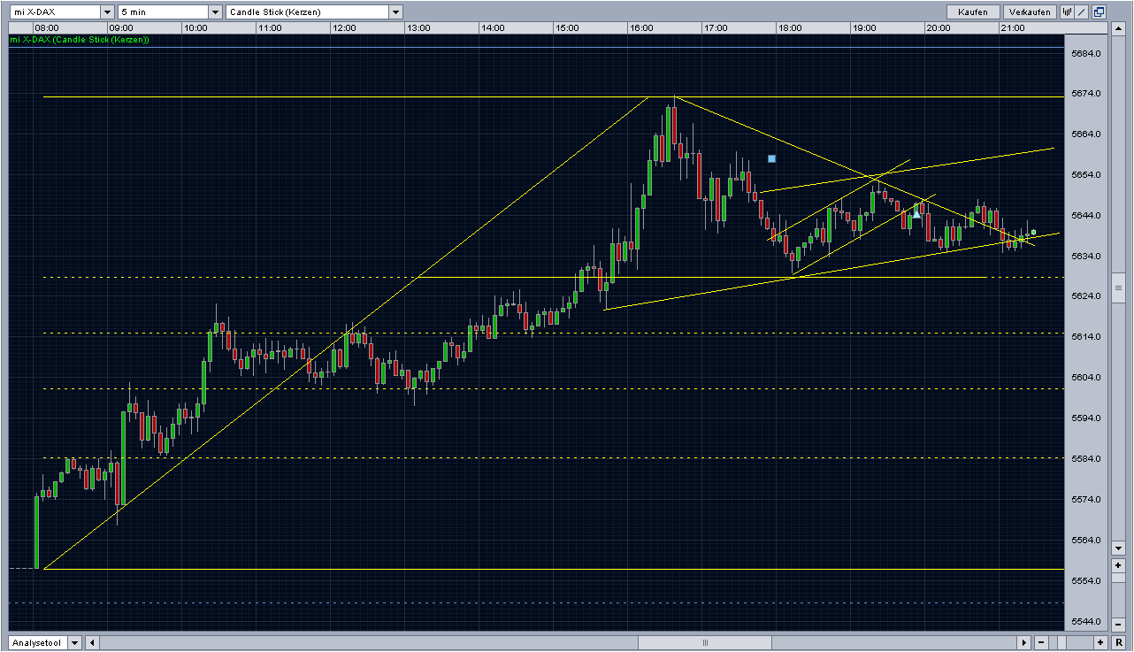 Wenig Neues brachte die letzte Woche für den Dax. Der deutsche Leitindex pendelte zwischen 5530 und 5720, beide Extreme wurden am Donnerstag errreicht. Bezeichnend war jedoch das Scheitern an der 5720, die wir im letzten Update als wichtigen Widerstand ausgemacht hatten, dessen Überwinden schnelle Zugewinne auf 5860 ermöglicht hätte. Daß damit eine wichtige Chance vertan wurde, deutet darauf hin, daß wir noch einmal ein neues Tief im Bereich der 5300 sehen werden. Was belastet die Aktienmärkte?
