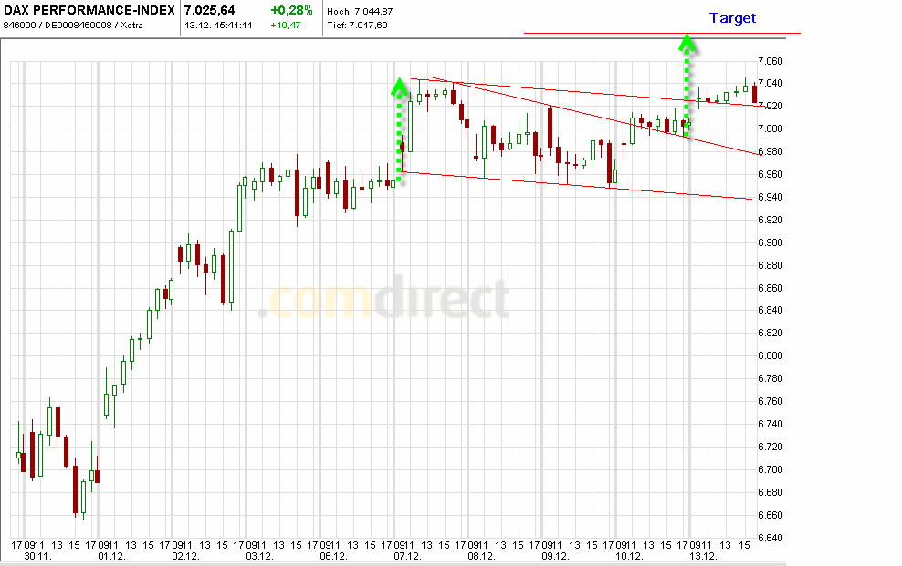am Tageshoch des Vortages (7018) abgeprallt, oben am JH (7043)