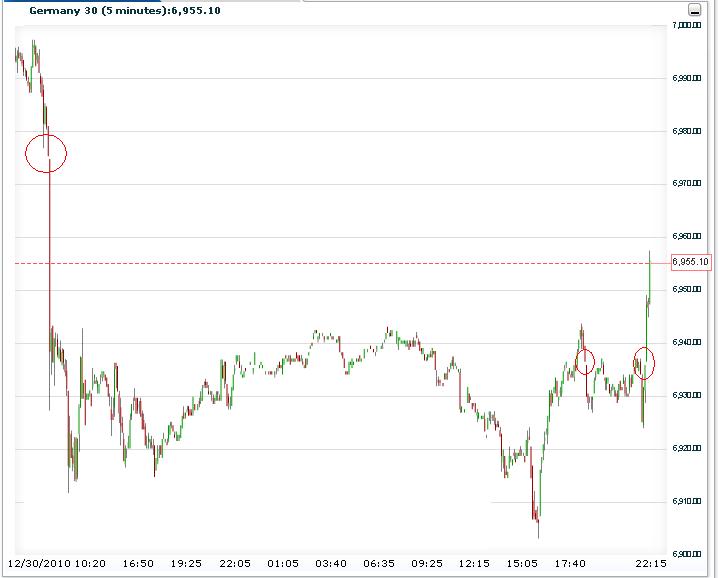Speziell im DAX Index haben sich vertrauensvolle, bullische Muster ausgebildet. Im US Markt bin ich etwas skeptisch, wobei der Start in das Jahr 2011 noch freundlich gestaltet werden dürfte. Es ist klar, dass der DAX Index kein Eigenleben entwickeln wird. Es lassen sich dort aber für das Trading markantere Marken erkennen. Es bleibt also nicht aus, die eigene Markteinschätzung an den bevorstehenden Mustern auszurichten, jeder Tag liefert weitere zielführende Hinweise.