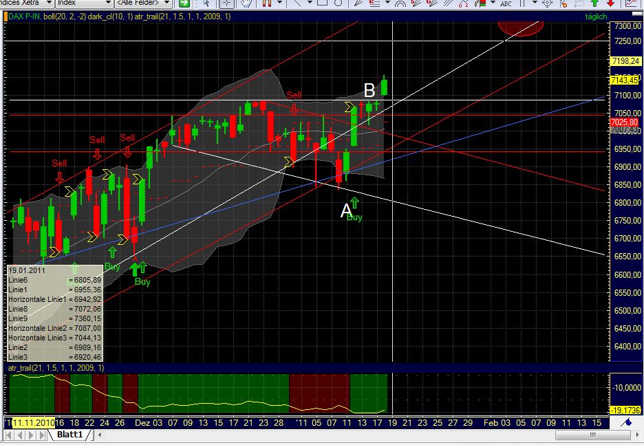 Wenn ich mich nicht irre, haben seit der Lehman Pleite am 15.09.2008 die Aktien zunächst mächtig eingebüßt. Rohstoffe gingen auch runter. Bei den Anleihen war nicht viel "trara". Dann wurden die Zinsen mächtig runtergeschraubt, woraufhin die Aktien wieder anzogen und Rohstoffe mit ihnen, Gold fing an durch die Decke zu gehen. Dann fielen die Anleihen, manche heftigst. Daraufhin fielen die Aktien wieder. Dann waren Zentralbanken bei nahezu 0% Zinsen angelangt und fingen an Anleihen zu kaufen und das im großen Stil. Das gefiel den Anleihen, den Aktien und den Rohstoffen. Und da sind wir nun - warten auf die Inflation. Zumindest tut das ganz offiziell die EZB und möchte wohl demnächst wieder Zinsen etwas höher schrauben. Den Aktien wird's nicht gefallen, den Anleihen schon. Aber die Aktien brauchen sich erstmal nicht zu sorgen, denn EZB und Fed kaufen ja immer noch fleißig Anleihen. Also geht's weiter UP. Bis es irgendwann (ich schätze ca. 2012) heißt: "1 Liter Super - 2,50 EUR" oder vielleicht sogar: "Sonderangebot - 10 Brötchen 10 Euro".
