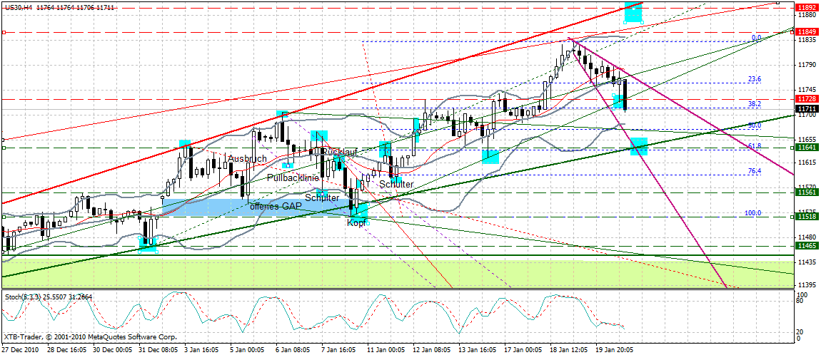 Der Ausbruch aus dem Keil bei umgerechnet 11825 würde den heutigen Rücksetzer beenden und den DJ sofort in Richtung 11900+x führen.