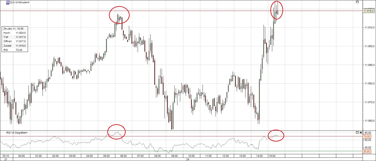Dass sich der Index per Saldo nicht wirklich bewegt hat, kümmert ihn jedoch nicht weiter. "Hier wird versucht, ein paar Leute aus dem Markt zu schütteln", erklärt er die jüngsten Korrekturen. Er ist nicht betroffen, denn sein Stopp gibt dem Trade noch ausreichend Luft.