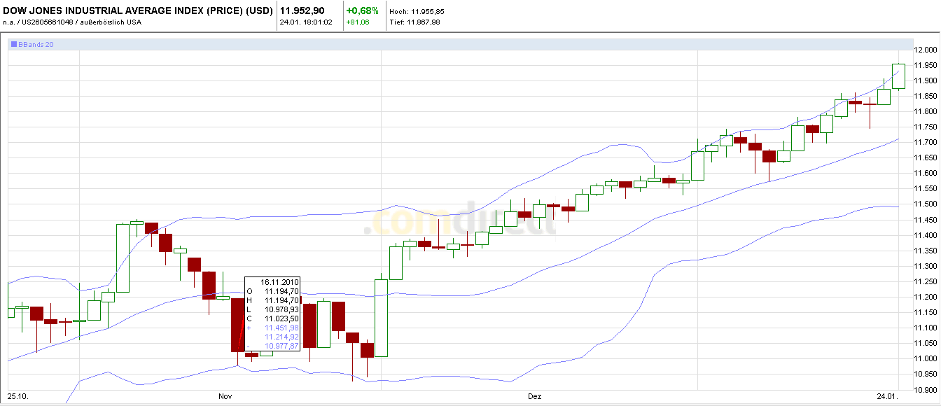 Heute haben wir wieder einen Test der 8010 gesehen mit gleichem Ausgang wie in der letzten Woche , dieser Bereich wird bisher stetig gekauft , hinzu kommt , dass der Ami an seinem Widerstand 11930 nagt (daily) , ein Schlusskurs oberhalb von diesem würde weitere 150 Punkte Potenzial freisetzen. Stützend wirkt vor allem das mittlere daily Bollinger , nun bereits den 3. Tag in Folge. Falls wir dieses durchstoßen haben wir noch die 6980/90 als sup , darunter das gap bei 6942 als nächsten Anlaufpunkt.