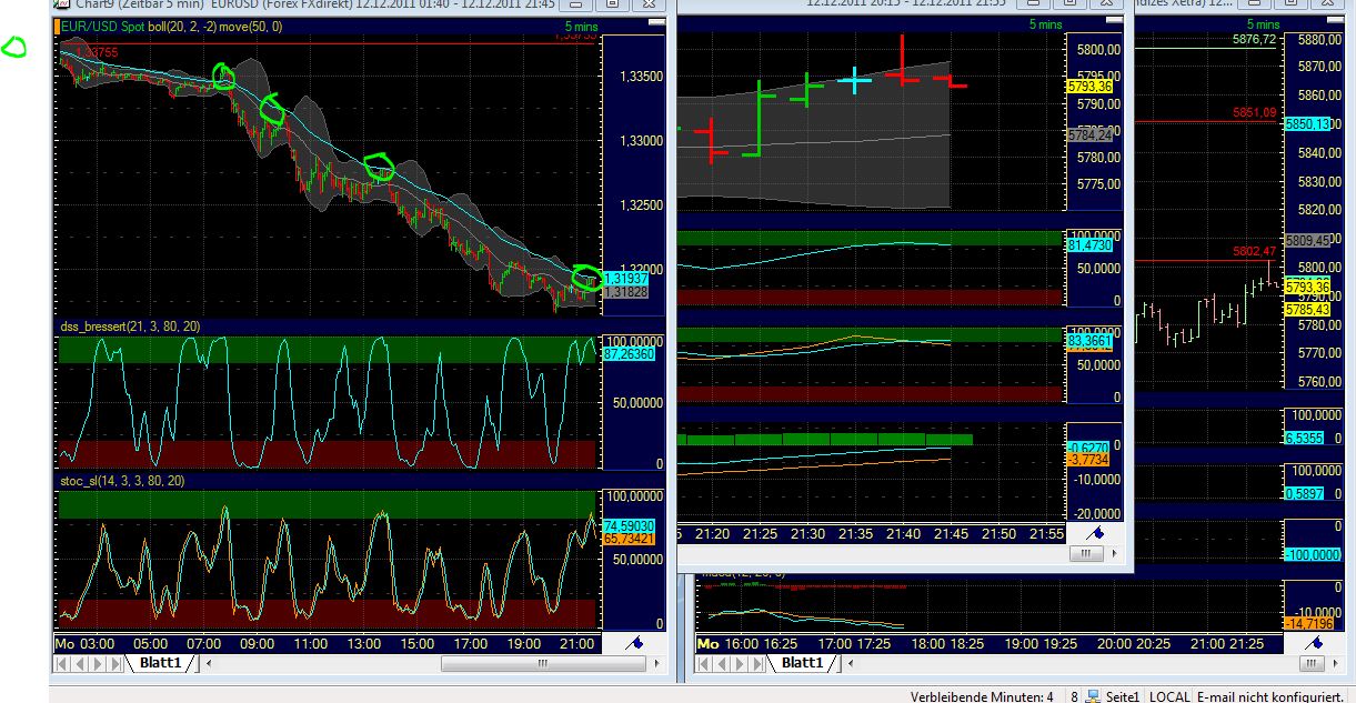 Wer im kurzen (5-15) tradet könnte jetzt spekulativ kurz oder lang gehen - gut abgesichert. In beide Richtungen ist Luft. Wer längerfristig traden will bleibt jetzt flat, so er nicht bekloppt ist. Denn der Trend zeigt zwar nach unten, aber das Risiko einer positiven Konsolidierung ist ziemlich hoch. Dann gibts die shorts billiger
