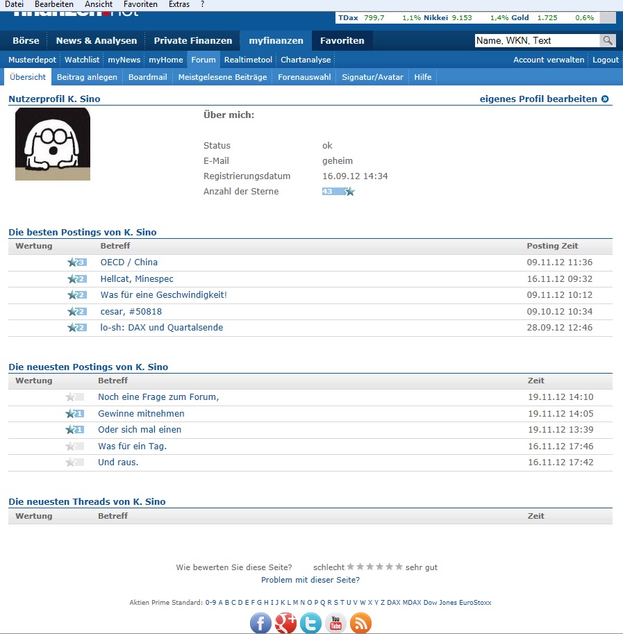 Hab wohl damals einen Fehler gemacht, mich über finanzen.net für's Forum anzumelden.