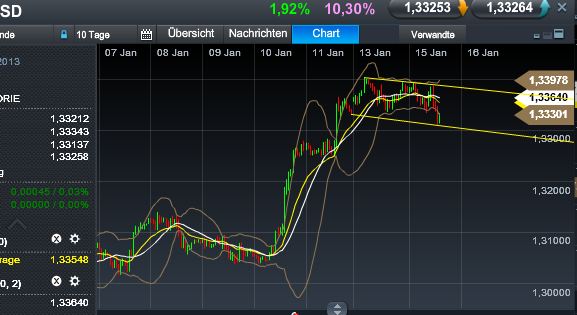 Der EUR hält sich verhältnismäßig gut. Eine kleine Konsolidierung nach dem Anstieg von 1,31 auf fast 1,34 kann nicht schaden.