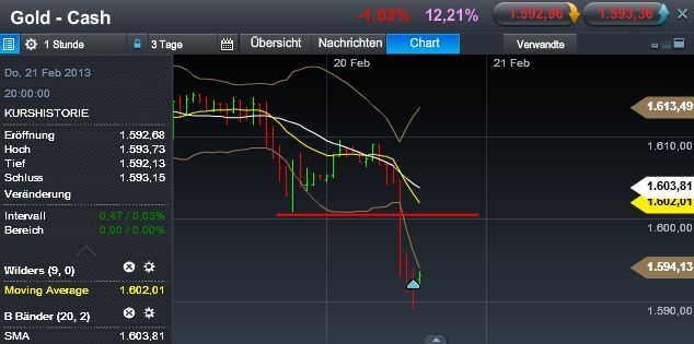 Mittelfristig droht ein Ausbruch zur Unterseite, sprich unter 1,52 was ein Kursziel von 1,42 bedeuten könnte.