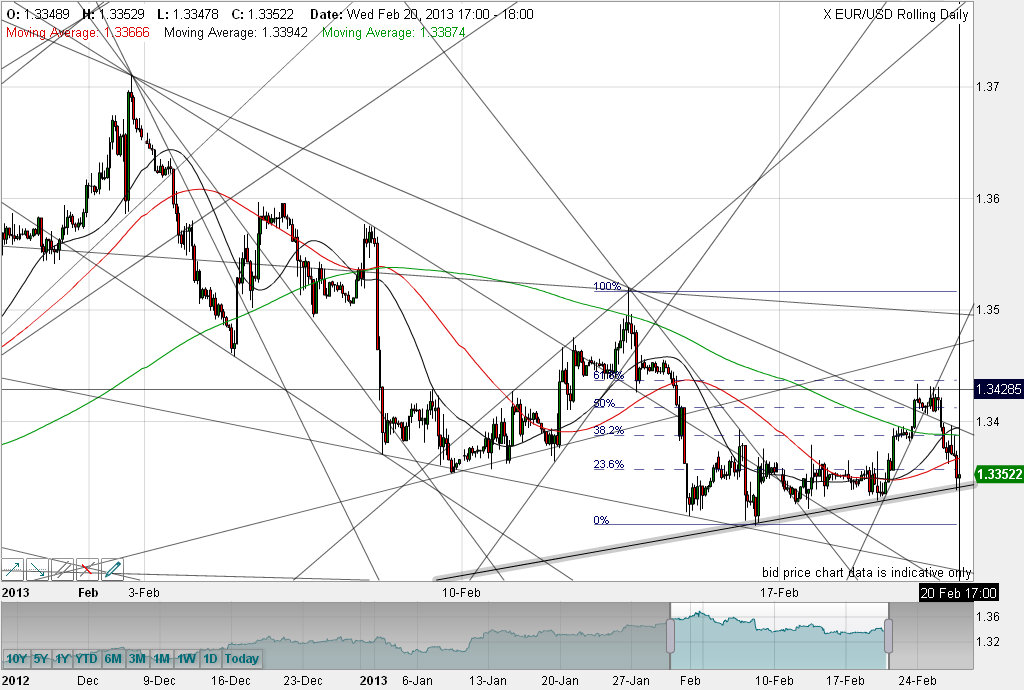 Habe eben den Goldchart bei Tradesignalonline angeschaut.( sehr genaue Darstellung) Da verläuft die untere Keilbegrenzung erst bei 1588 $. Trotzdem waren wir 1ß $ unter dieser TL im Tagestief. Trendynamik nach oben kommt nicht auf. Ich bin rausgeflogen aus derm Goldtrade!'