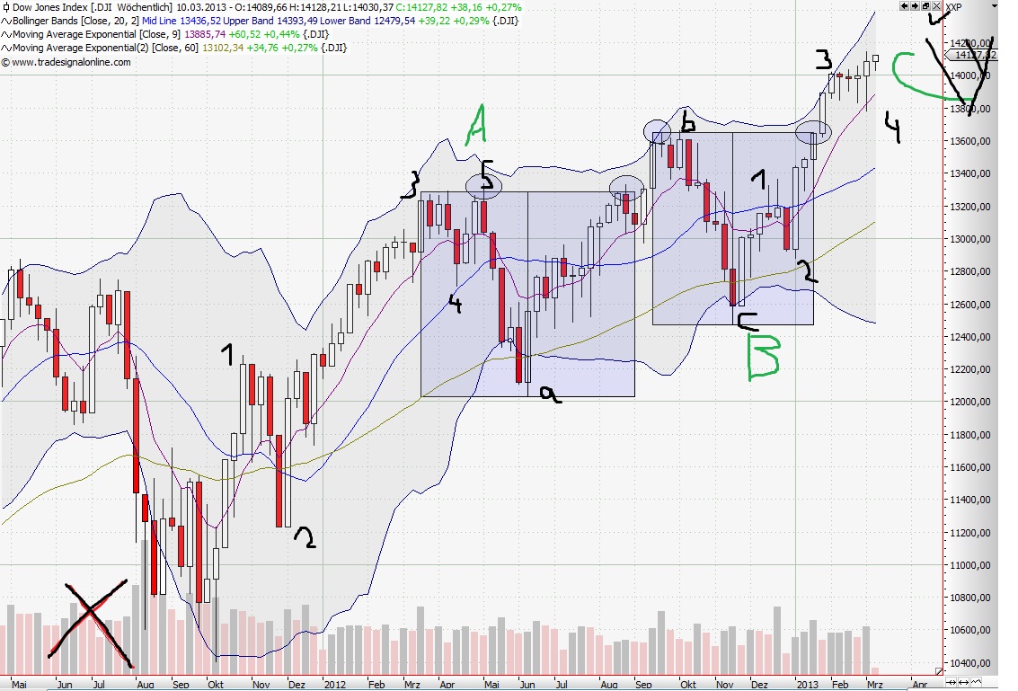 DOW war in db (Deutsche Bank) - Indikation bei 14.158 Punkten .... Lasse die Longs jetzt laufen.....