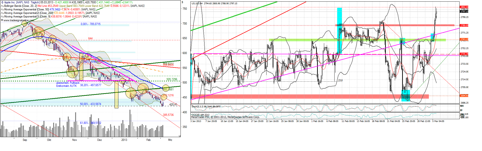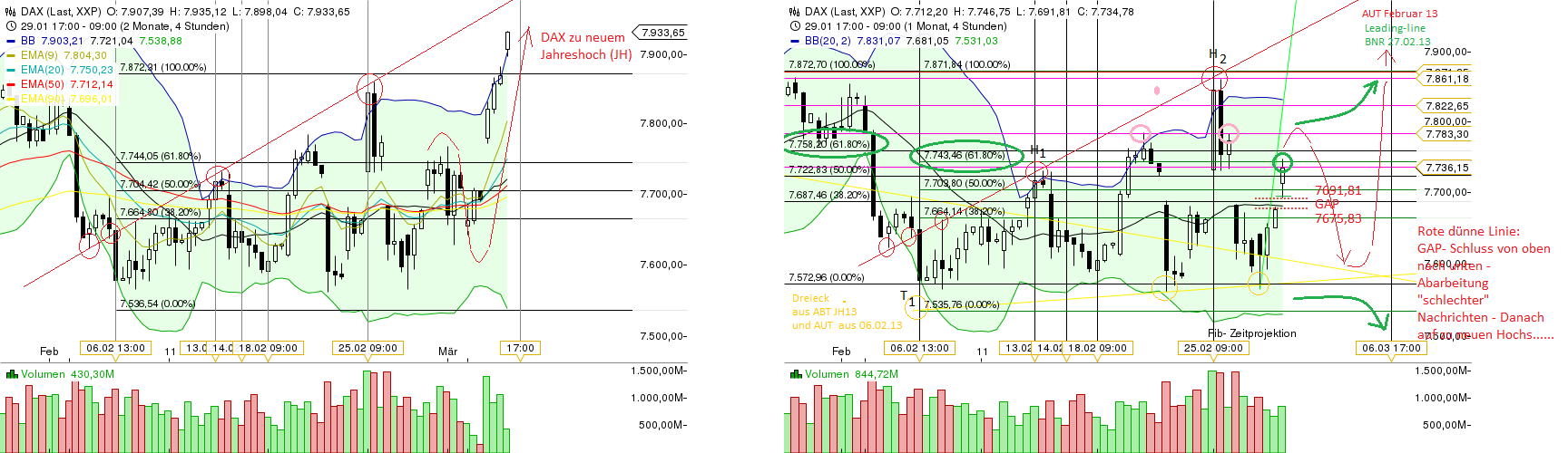 Chart / DAX 240min - aktuell (links) .......vom 28.02.13 (rechts)
