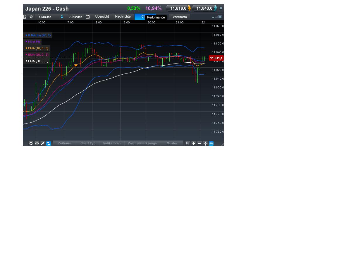 Ansonsten sieht man im Chart sehr schön die eüb´s (Übertreibungen am oBB - oberen Bollinger- Band, sieht im 240er beinahe wie ein deliberation aus - dann mit GAP nach oben heute Morgen) - ich rechne doch demnächst mit einem Wieder- Hinein- laufen in das BB - jou; und dann mal sehen ob es doch noch die 8xxx demnächst geben wird. Kerzen sämtliche weit oberhalb EMA9 / 20 / 50 / 90.....
