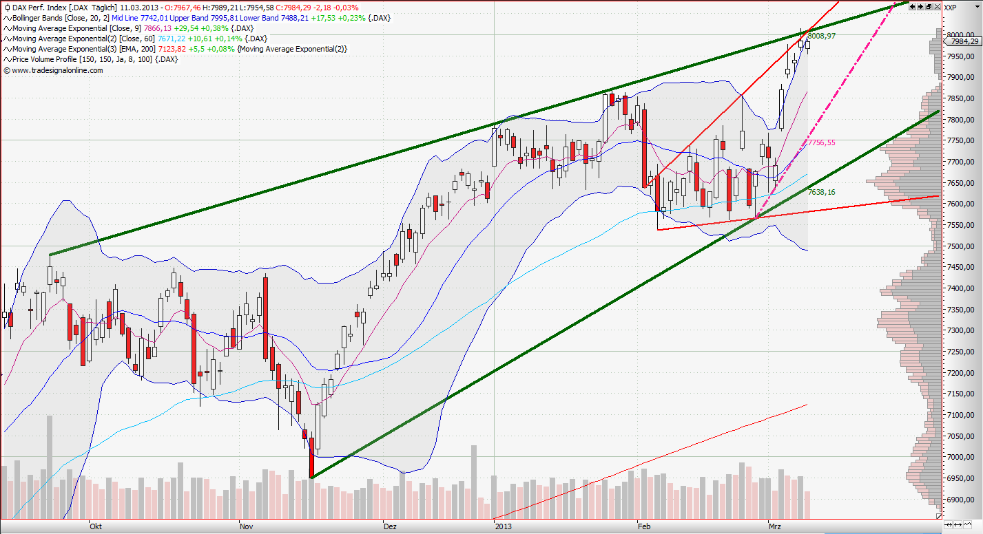 meine Dax longs sind raus, der Dow läuft weiter und macht wieder ein neues AZH.