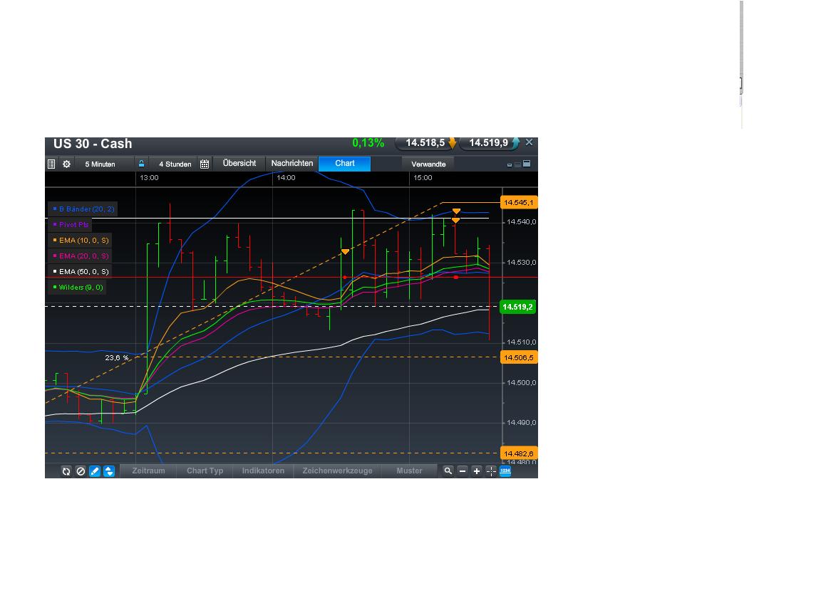 Die BB im 4h chart verengen sich langsam, da könnte ein erneuter Ausbruch bevorstehen. Hab mir überlegt eine stop-buy order bei 14555 mit SL 20P zu hinterlegen. Das alte AZH 14540 "könnte" dann als sup dienen, sowie die EMA9, mBB und der Bereich 14400.