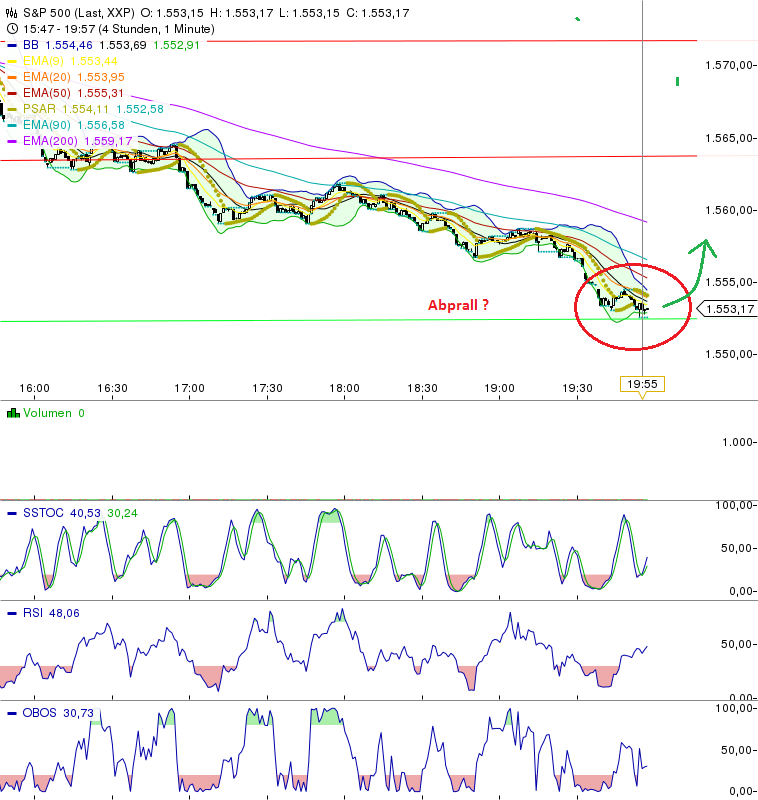S&P drehte erst einmal leicht bei 1552 Uk Aufwärtstrendkanal... jetzt 1555.....