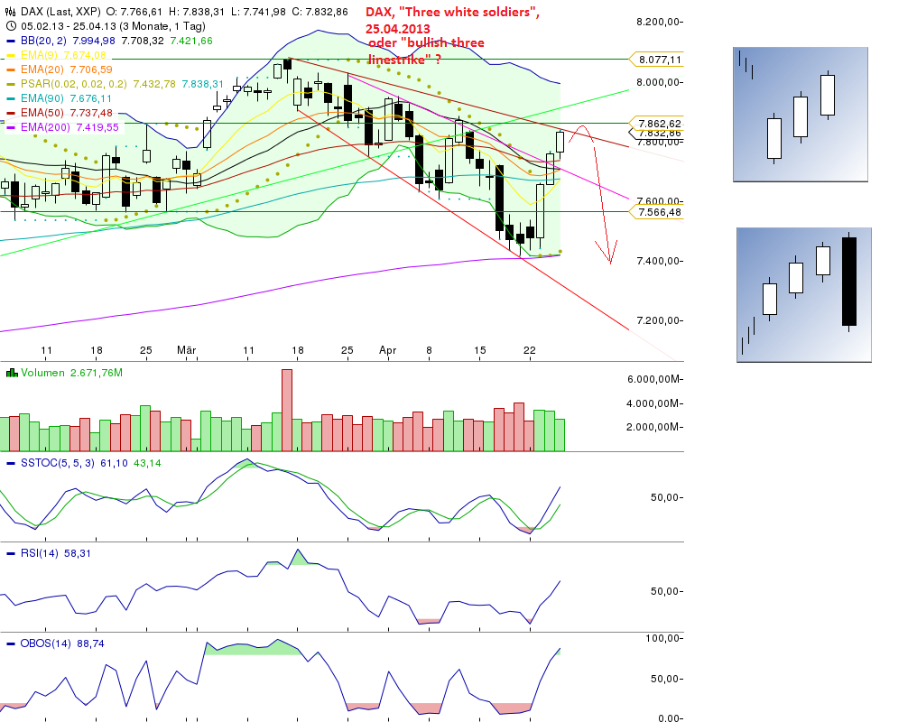 Sollte der Kurs Morgen sofort im Fallen begriffen sein, dann könnte es sich auch um ein "Bullisch Three Line Strike" handeln.