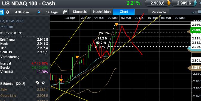 Bei 2901 F stößt der NDX F zwar an den mehrmonatigen AUTK, aber sollte sich das V durchsetzen, dürfte dieser bald nach oben gebrochen werden. Bisher ist Dampf unter dem Kessel.