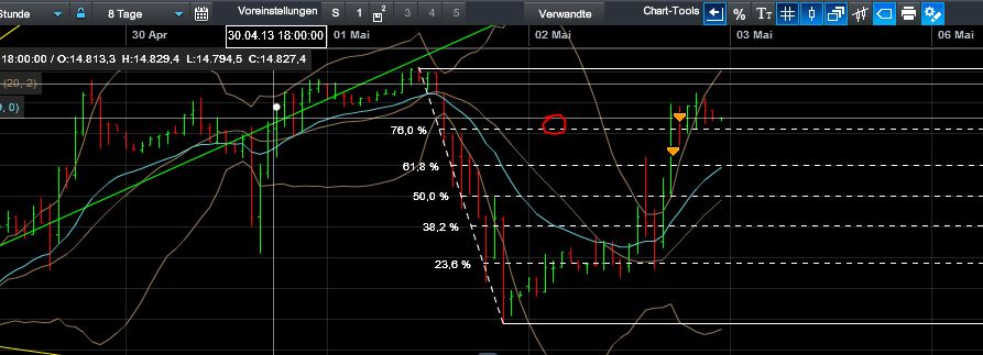 Ich warte für Short einen Trendbruch ab. Ansonsten würde ich den Pullback – so er denn kommt, bei 7840 F zurzeit Long kaufen.