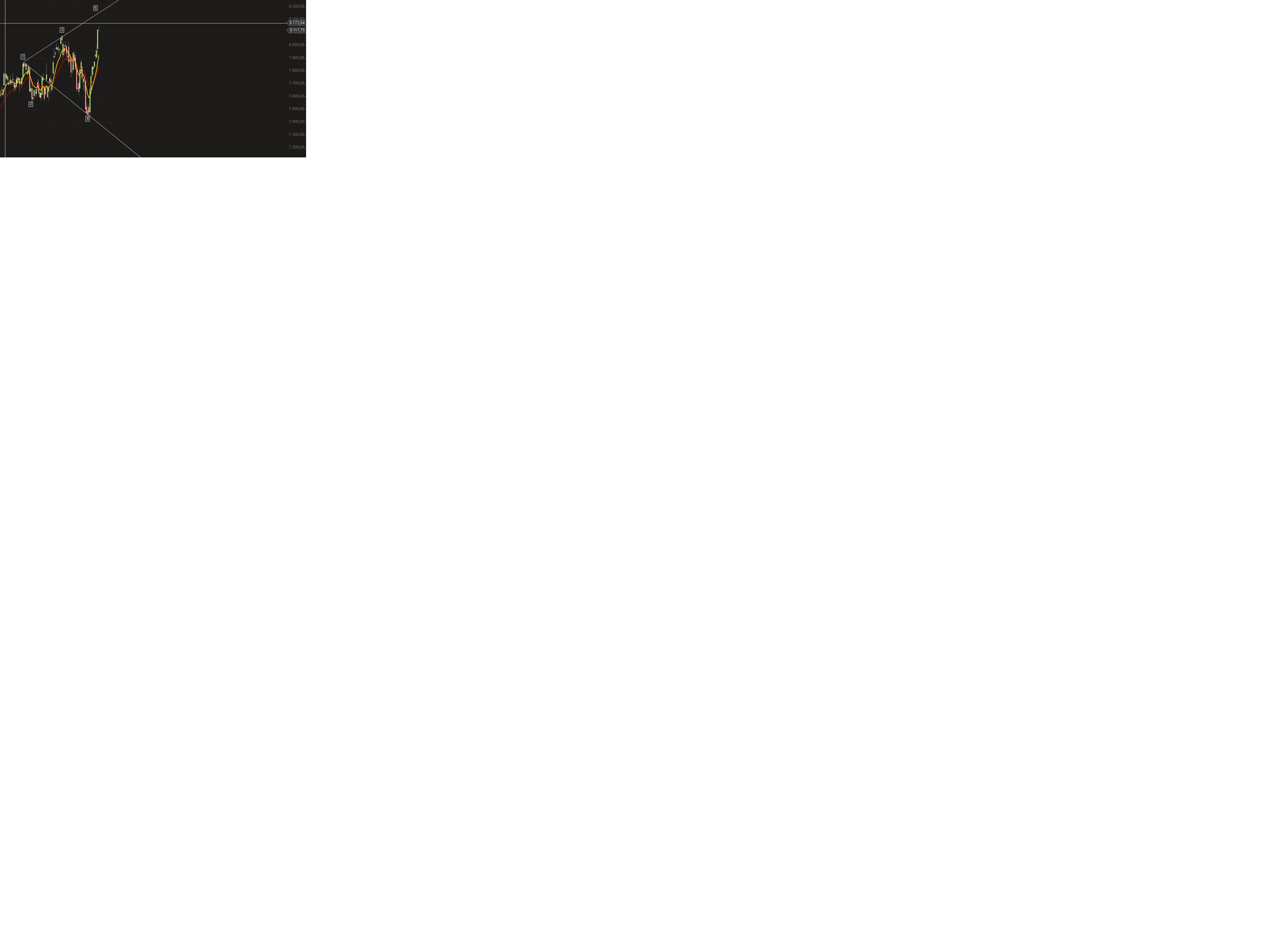 Guten Tag in die Runde.. Wenns eine Wolfe Wave ist, dann ist das Ziel ca 8240 um das Swing High Nummer 5 abzuschließen.Ziel ist die Verlängerung einer Linie von Punkt 1 zu 4.