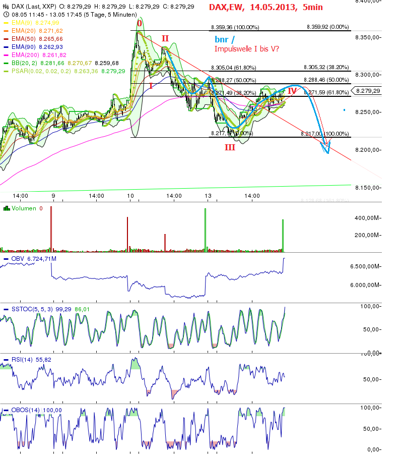 Das hat wunderbar zugetroffen, und der Kurs des DAX hat die 0-II-Linie überschritten auf eine Welle IV.